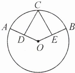 16. (教材九上P123复习题T2变式)如图,在⊙O中,D,E分别是半径OA,OB的中点,C是$\overset{\frown}{AB}$上一点,CD=CE。求证:$\overset{\frown}{AC}$=$\overset{\frown}{BC}$。