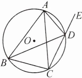 5. 如图,四边形 $ABCD$ 是 $\odot O$ 的内接四边形,连接 $AC$,$BD$,延长 $CD$ 至点 $E$. 若 $AB = AC$,求证:$\angle ADB = \angle ADE$。