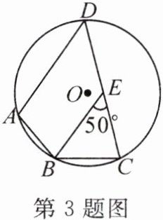 3. (2024·吉林)如图,四边形 $ABCD$ 内接于 $\odot O$,过点 $B$ 作 $BE // AD$,交 $CD$ 于点 $E$. 若 $\angle BEC = 50^{\circ}$,则 $\angle ABC$ 的度数是(