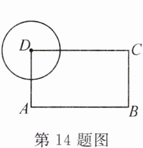 14. 如图,在矩形$ABCD$中,$AB = 2$,$AD = 1$,以顶点$D$为圆心作半径为$r$的圆. 若要求另外三个顶点$A$,$B$,$C$中至少有一个点在圆内,且至少有一个点在圆外,则$r$的取值范围是