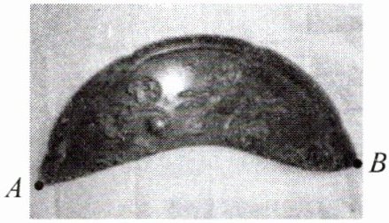 16. 新考向 真实情境 “以铜为镜,可以正衣冠.”铜镜是我国古代人民勤劳和智慧的结晶. 如图所示的是一个铜镜的残片,文物修复专家准备用现代高科技手段将其复原,使得“破镜重圆”. 文物修复专家量得铜镜残片上最大的弦$AB$的长为$16\mathrm{cm}$,铜镜上的点到弦$AB$的最大距离为$6\mathrm{cm}$.