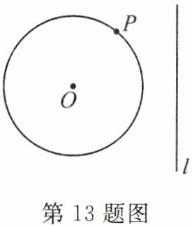 13. (2023·宿迁) 如图,在同一平面内,已知 $ \odot O $ 的半径为 2,圆心 $ O $ 到直线 $ l $ 的距离为 3,$ P $ 为圆上的一个动点,则点 $ P $ 到直线 $ l $ 的最大距离是(