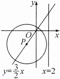 17. 如图,$ P $ 为正比例函数 $ y = \frac { 3 } { 2 } x $ 图象上的一个动点,$ \odot P $ 的半径为 3,设 $ P ( x, y ) $.