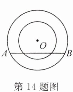 14. (教材九上 P101 习题 T5 变式) 如图,两个同心圆,大圆的半径为 5,小圆的半径为 3. 若大圆的弦 $ A B $ 与小圆有公共点,则 $ A B $ 的取值范围是