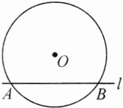 12. 如图,在半径为 $ 10 \mathrm { cm } $ 的 $ \odot O $ 中,直线 $ l $ 交 $ \odot O $ 于 $ A $,$ B $ 两点,且弦 $ A B = 16 \mathrm { cm } $,要使直线 $ l $ 与 $ \odot O $ 相切,则需要将直线 $ l $ 向下平移(