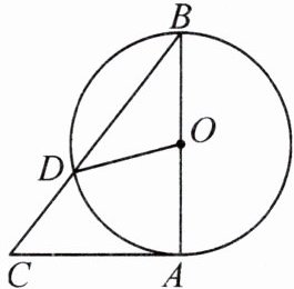 7. (2024·山西)如图,已知△ABC,以 AB 为直径的⊙O 交 BC 于点 D,与 AC 相切于点 A,连接 OD。若∠AOD = 80°,则∠C 的度数为(