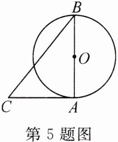 5. (2024·浙江)如图,AB 是⊙O 的直径,AC 与⊙O 相切,A 为切点,连接 BC。若∠ACB = 50°,则∠B 的度数为