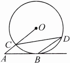 9. (2023·眉山)如图,AB 切⊙O 于点 B,连接 OA 交⊙O 于点 C,BD//OA 交⊙O 于点 D,连接 CD。若∠OCD = 25°,则∠A = (