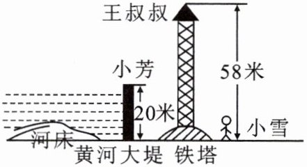 (1)解:以黄河大堤上为基准,记为0米,则小芳所在的位置高为0米,小雪所在的位置高为-20米,王叔叔所在的位置高为+38米.