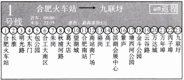 11.(问题情境)如图是合肥地铁1号线的线路图,共有23站.规定从合肥火车站开往九联圩的方向为正方向.某天小明、小红和小兰都在望湖城站上车,把望湖城站作为起始点,记作0,小明沿着正方向坐了6站在紫庐站下车,记作+6.