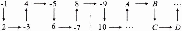 (3)第2025个数是正数还是负数? 排在对应于A,B,C,D中的什么位置?