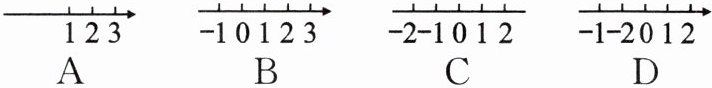 D选项:单位长度不统一(-1到-2之间距离与其他单位长度不同),不符合数轴定义。