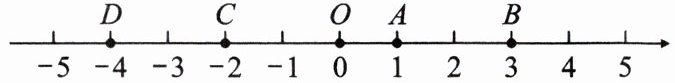 (2) 解:由原点位置可知,点B在原点右侧第3个单位长度,所以点B表示的数是3。