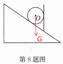 8. 如图所示,一个小球在竖直挡板的作用下静止在斜面上,请作出小球所受重力的示意图。(O为小球的重心)
