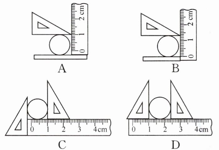 1. 如图所示为测量硬币直径的几种方法,其中正确的是 ()
