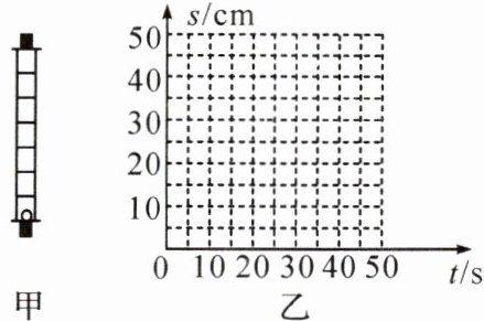 。(2) 小明记录气泡上升一段路程后的实验数据如表所示,请你在图乙的坐标系中画出 $ s - t $ 图像。