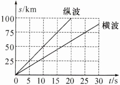 (2)图示两条直线分别表示这两种波从震源开始传播的距离(s)与所用时间(t)的关系,若上述时间间隔t=10s,计算震源到该监测站的距离。