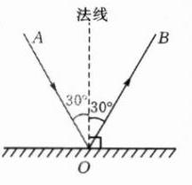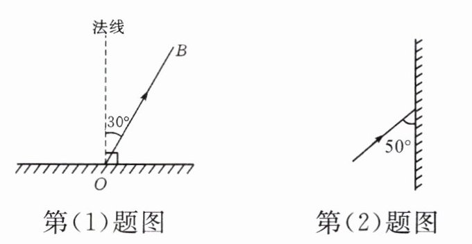 4. (1) 如图,根据给出的反射光线 OB 画出入射光线 AO,并标出入射角的度数。