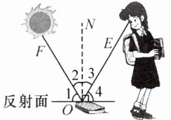 2. 如图,人之所以能看见不发光的课本,是由于课本反射的太阳光进入我们的眼睛。对于图中的描述,下列说法中正确的是(