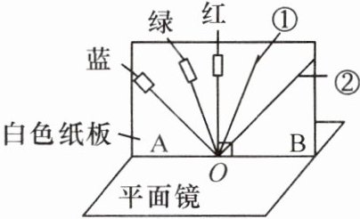 9. 如图所示,小海同学在“探究光的反射定律”实验中,利用红、绿、蓝三种色光的激光笔进行实验,他将位于同一平面内的白色纸板立在平面镜上。下列说法中正确的是(