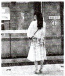 玻璃制成的地铁安全门前候车时,她在玻璃