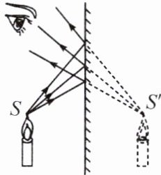 1. 如图所示,平面镜所成的像是由反射光线的