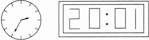 15. 小明从平面镜里看到镜子对面石英挂钟和电子钟所成的像如图所示,这时石英挂钟和电子钟显示的时间分别是