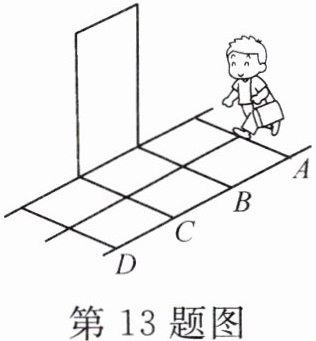 13. 如图所示,走廊的墙边竖直立有一面镜子,小明沿 AD 从镜前经过,关于他的像,下列说法正确的是(