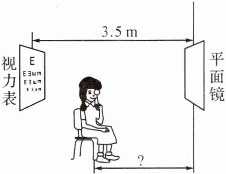 10. 兰生复旦校本经典题 视力检测时要求被测的人与视力表的距离为 5 m。如图所示,视力表与平面镜的距离是 3.5 m,为满足检测要求,人与平面镜的距离应为(