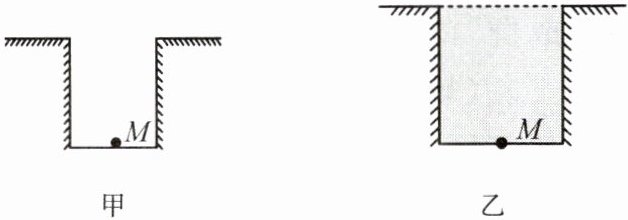 (2)一场大雨后,井中灌满积水,青蛙仍在井底 M 点“坐井观天”,请在图乙中大致画出青蛙通过积水能观察到的井外的范围。