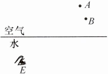 (填“A”或“B”)点是像所在的位置,在图中画出水下 E 处的潜水员看到路灯的光路图。