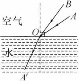 11. 如图所示,OA'是入射光线 AO 的折射光线,请在图中画出入射光线 BO 的反射光线和该入射光线在水中的折射光线的大致方向。