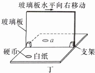 (5)完成实验后,小明同学又将一枚硬币放在玻璃板前,能看到它在玻璃板后的像在 a 位置,如图丁所示,若将玻璃板水平向右移动 3 cm,则该硬币的像