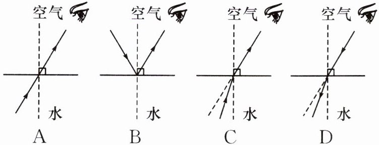 5. (2024·淮北期末)小明站在水边,看到树在水中的倒影。下图中能正确反映他看到树的倒影的光路图是(