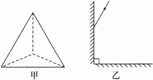 12. (2024·泸州)如图甲是随嫦娥六号一起发射的角反射器的示意图,其三个反射面相互垂直,其中两个反射面如图乙所示,一束光只在这两个反射面发生了反射,请在图乙中画出这束光反射的光路图(保留作图痕迹)。