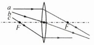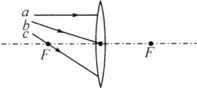 13. (1) 如图,F是凸透镜的焦点,a、b、c是三条入射光线,请画出这三条光线经凸透镜后的出射光线。