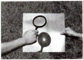 12. 如图,在注有清水的试管内留有一稍大的空气泡,使太阳光从试管的正上方向下照,观察试管下方的白纸,可以发现白纸上空气泡下方较