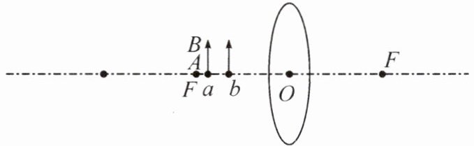 3. 如图所示,F 为凸透镜的焦点,在图中分别作出物体 AB 在 a、b 两处通过透镜所成的像。