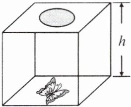 2. 小明用透明塑料盒设计了一个昆虫标本观察器,如图所示。盒底上放标本,盒盖上嵌入一凸透镜。有焦距为 5 cm 和 10 cm 的两种凸透镜,为了在盒盖上方通过凸透镜观察到标本正立、放大的像,凸透镜焦距 f 与盒高 h 选择合理的是(
