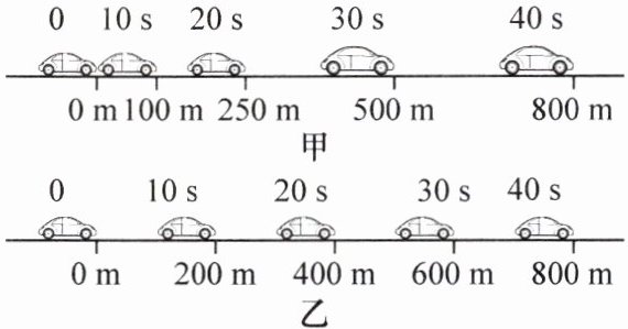 6. 如图记录了两辆汽车在平直公路上的运动情况,在这 $ 800\ m $ 的运动过程中,甲、乙两车的平均速度 $ v_{甲} $
