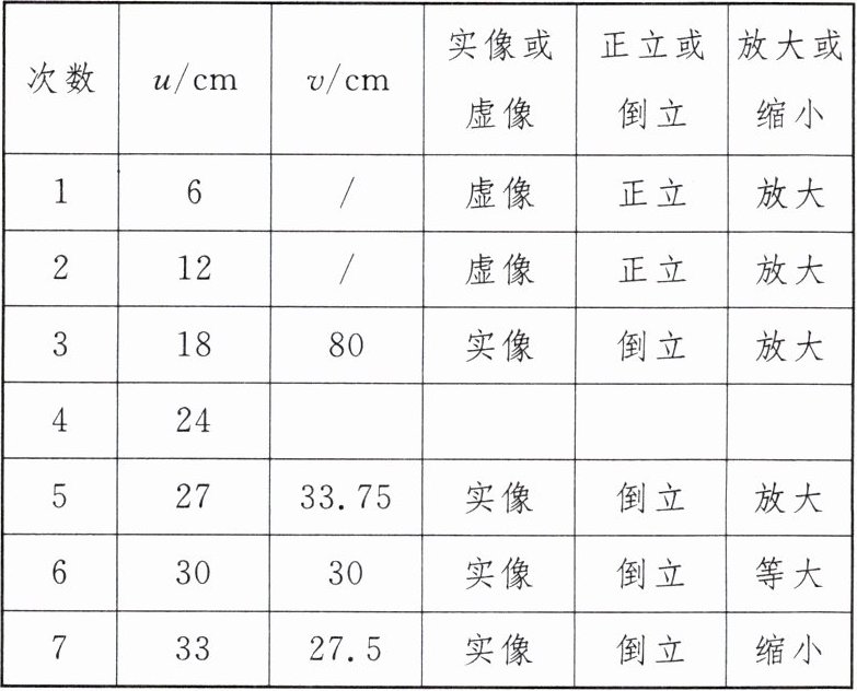 (5)移动光屏直至光屏上出现最清晰的像,记录此时的像距以及成像特点