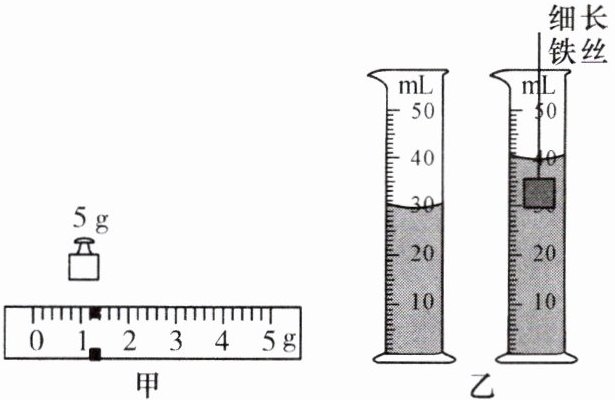 g;用量筒测量小木块的体积如图乙所示,小木块的体积 $ V = $10