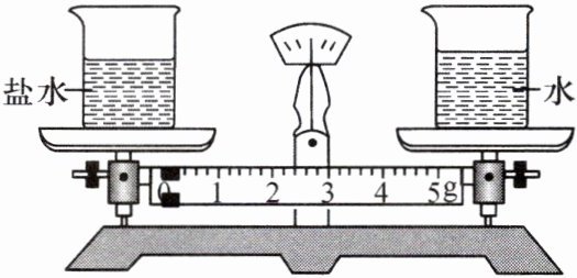 (2) 将上述装有盐水和水的烧杯分别放在天平的左盘和右盘,天平不平衡。