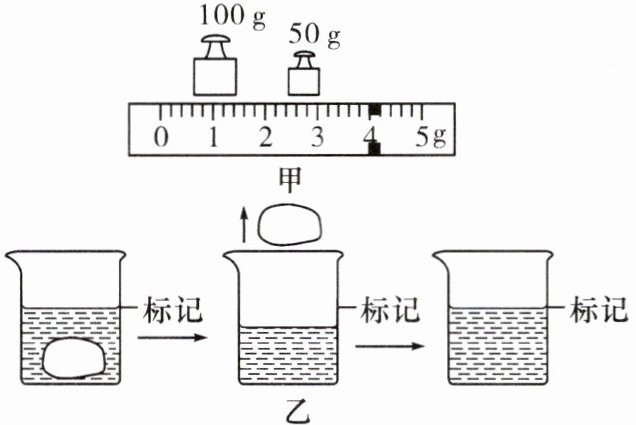 (2) 小明在测量石块的体积时,发现石块不能放入量筒中,于是他选用一个烧杯来测量石块的体积,过程如图乙所示:
