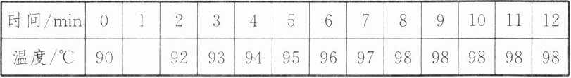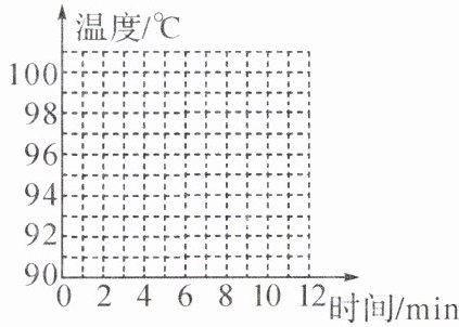 (3)请在下图中以时间为横轴,温度为纵轴,根据表格中的数据描点作出水的沸腾图像。