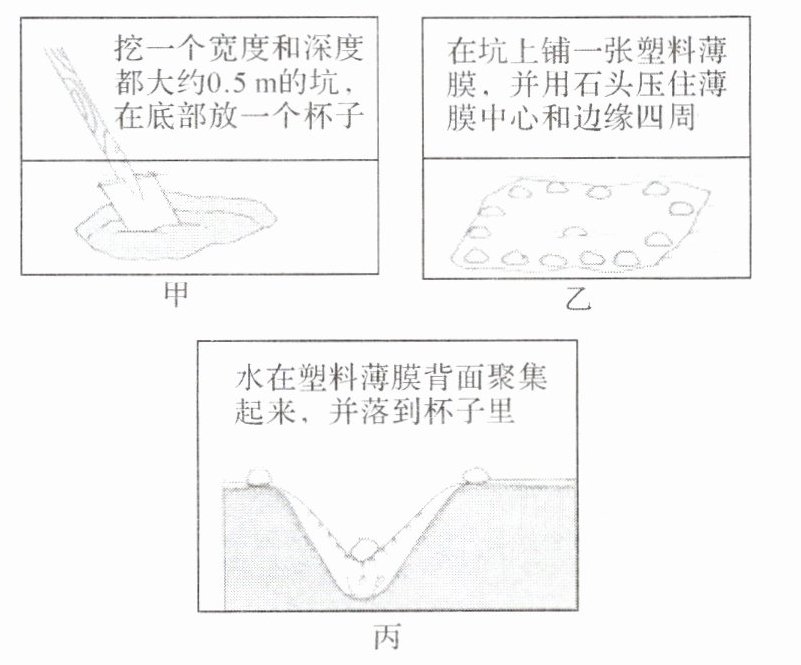 1. 在沙漠中,可以利用如图所示的方法应急取水,此过程中发生的物态变化是先