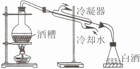 13. (2024·泸州改编)蒸馏法在酿酒过程中得到广泛应用,如图所示为蒸馏过程中的原理图,烧瓶内装有含酒精和水的酒糟,在蒸馏的过程中,涉及的物理知识的相关说法正确的是(