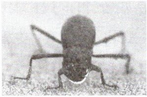 2. 在干旱的沙漠中,甲壳虫掌握了一种独特的获取水的方法。日落以后的几个小时,它们将头插进沙里,然后背朝着晚风吹来的方向,水珠就会在甲壳虫的背上形成(如图所示),当水珠越聚越多时,这些水珠就会沿着弓形背滚落入甲壳虫的嘴中。根据材料中所给的信息及所学的内容,回答下列问题:
