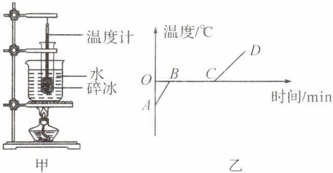。(2)当试管中的碎冰完全熔化后,继续加热一段时间,图乙是实验过程中冰的温度随时间变化的图像,由图像可知冰属于晶体,晶体熔化的特点是