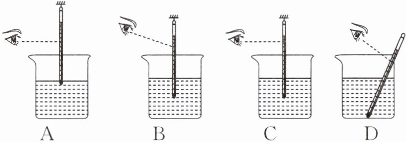 D.让温度计与被测液体接触一会儿,等示数稳定